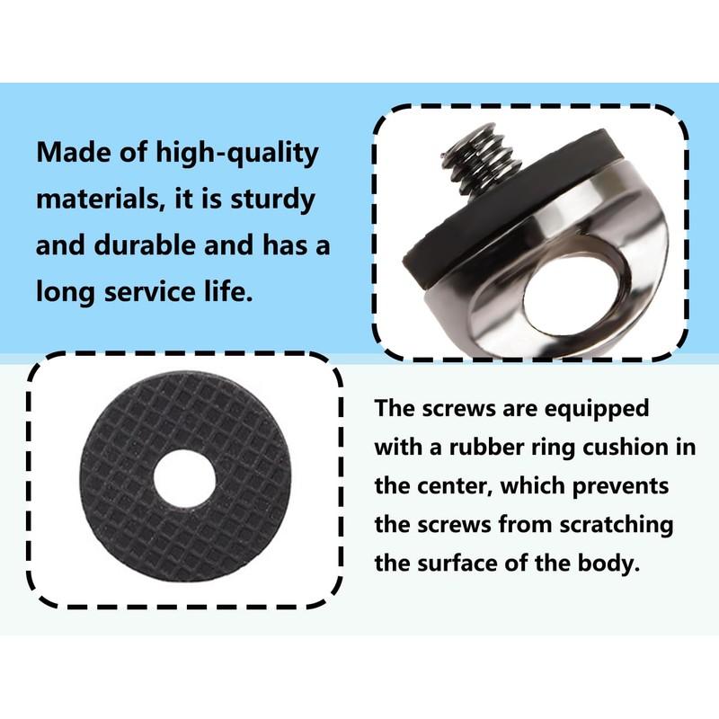 • [1/4" Thread Adapter Screws]:This kit includes four adapter screws with 1/4 inch thread, specially designed for camera straps. They are compatible with most cameras and carrying straps and offer you convenient mounting and disassembly options.