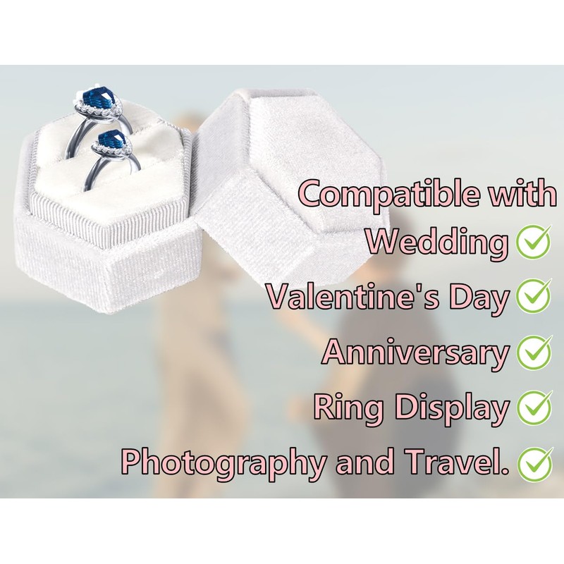 - [Ring Box Set]:This set contains a 5*4.5*4.5cm milky white ring box with hexagonal design, unique and fashionable. Unlike conventional square or round ring boxes, the hexagonal shape gives your ring a unique style and charm. They are an eye-catching option that makes your ring even more unique.
