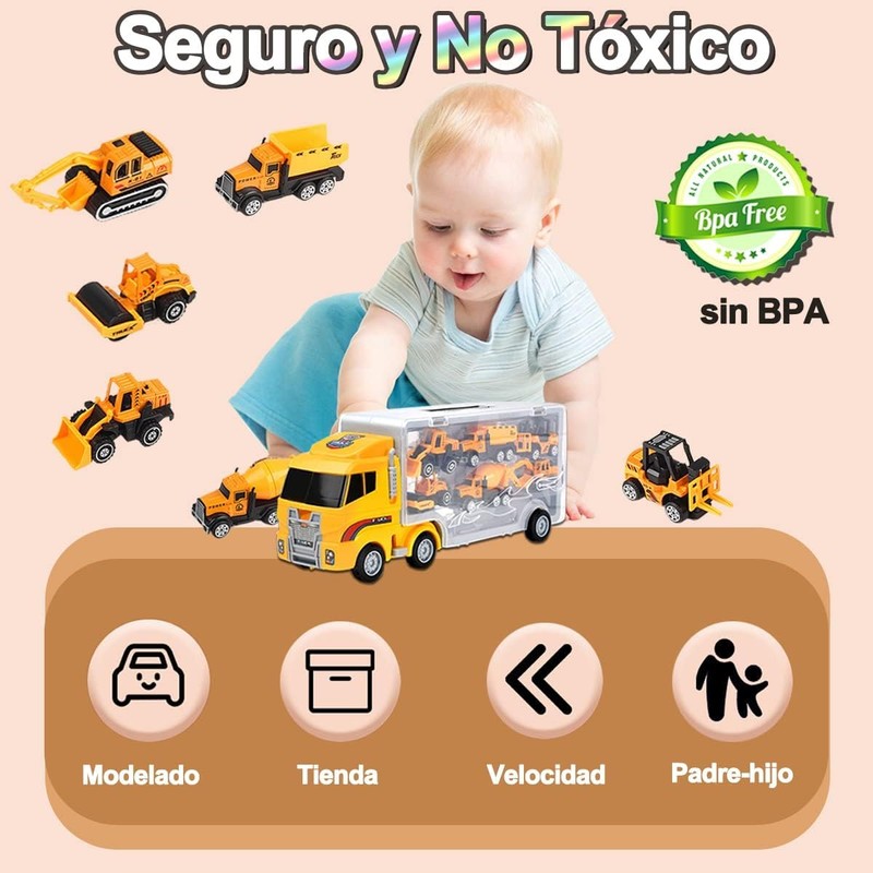 - 🚚【Cómodo Diseño con Asa de Transporte y Función de Carro Eyector】: Con una cómoda asa de transporte, el camión de juguete se puede llevar al lugar que desee. Y el conjunto de juguetes de construcción también está diseñado con la función de carro eyector, los niños podrían poner los carros en el lugar eyector y pulse el botón , el pequeño camión podría salir de la cabeza del camión grande. Muy interesante.