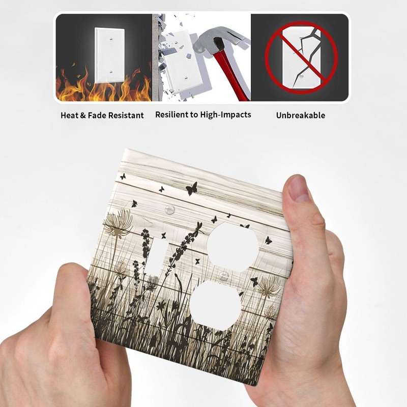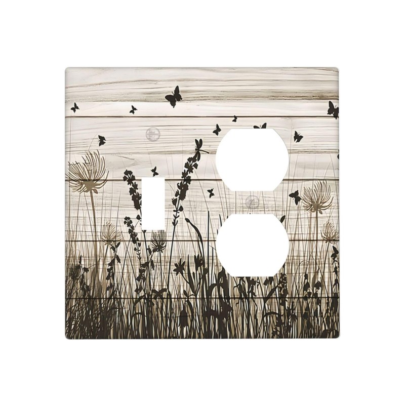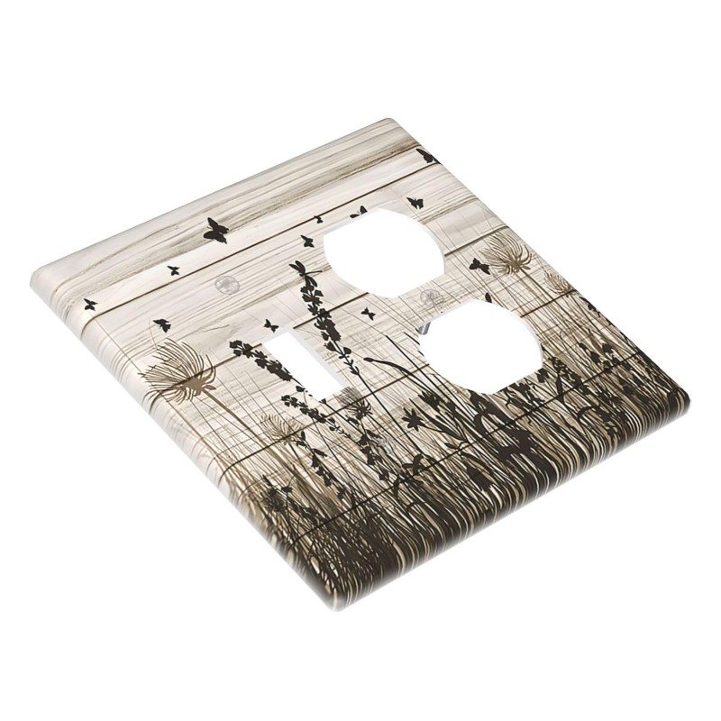 Lhdlnn Brown Rustic Wildflower 1 Toggle 1 Outlet Combination Light Switch Cover 2-Gang Electrical Wild Flowers Decorative Wall Plate Mid Size 5" x 5" for Bedroom Bathroom Playroom