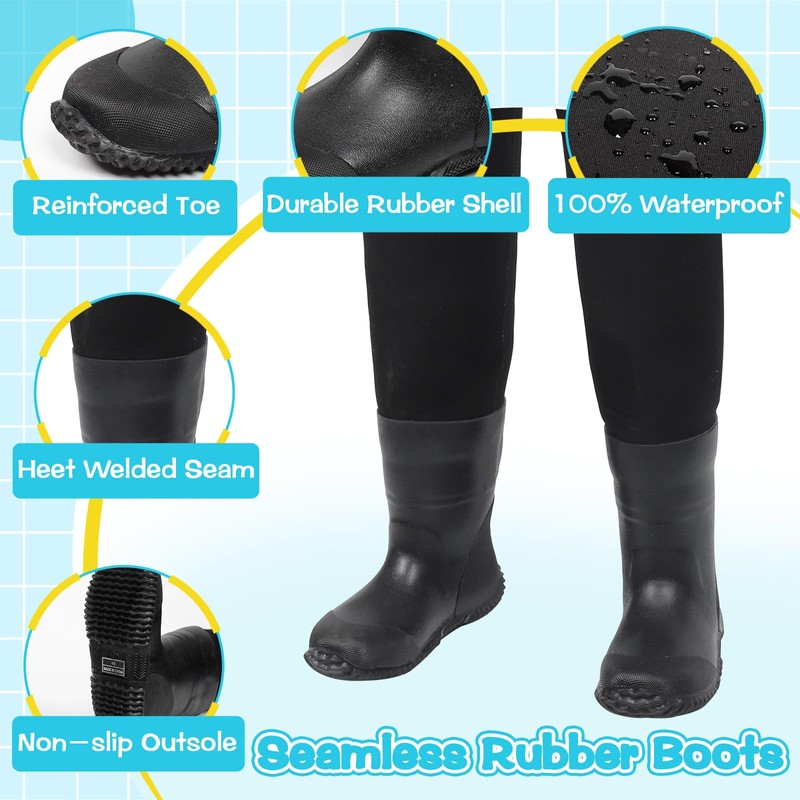 • 【Versatile Kids Waders】LHG kids waders are perfect for more than just fishing. Keep your kids comfortable during outdoor adventures like hunting, camping, ATV riding, gardening, or playing near water. The chest pocket is ideal for storing toys, snacks, treasures, and fishing accessories