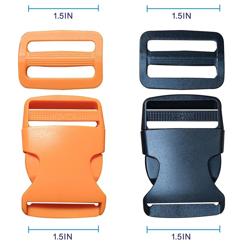 Buckle: 14 PCS Dual-side quick release buckles (black / 12 +orange / 2) for 1.5 ""webbing