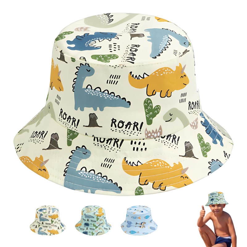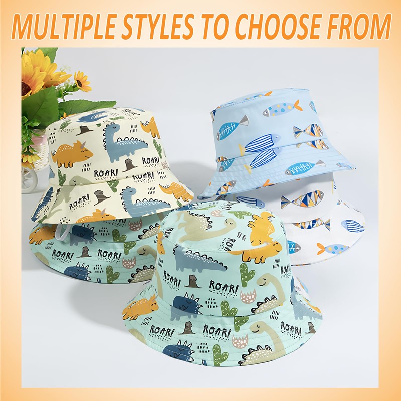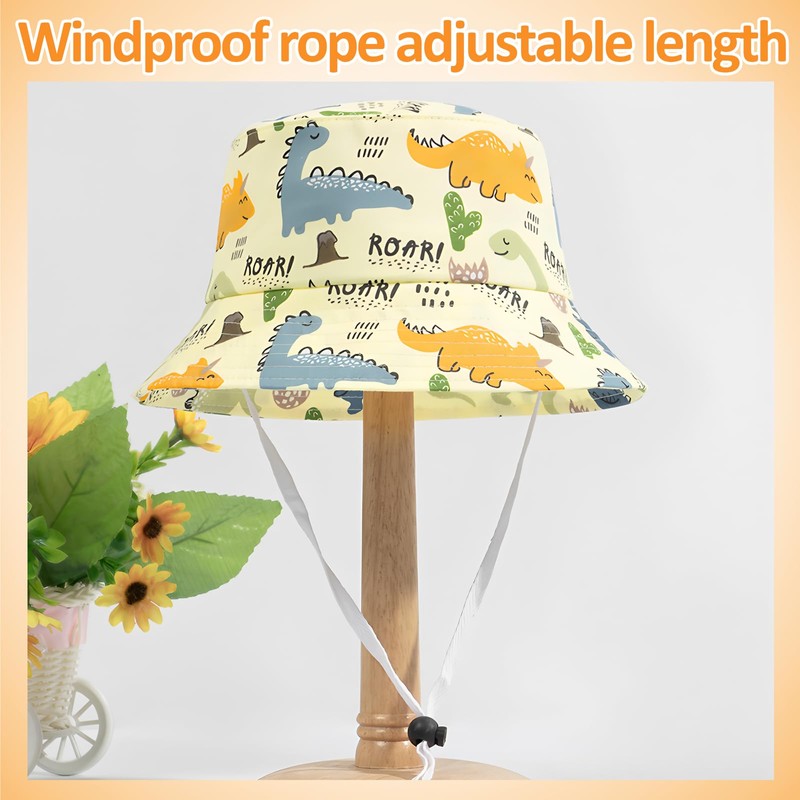 LHLZNB Baby Sun Hat 0-48 Months Toddler Sun Protection Animal Cap for Boys Girls Unisex Summer Bucket Hat with Adjustable Chin Strap UV Protection UPF 50+ (UK, Alpha, S, M, Yellow Dinosaur)
