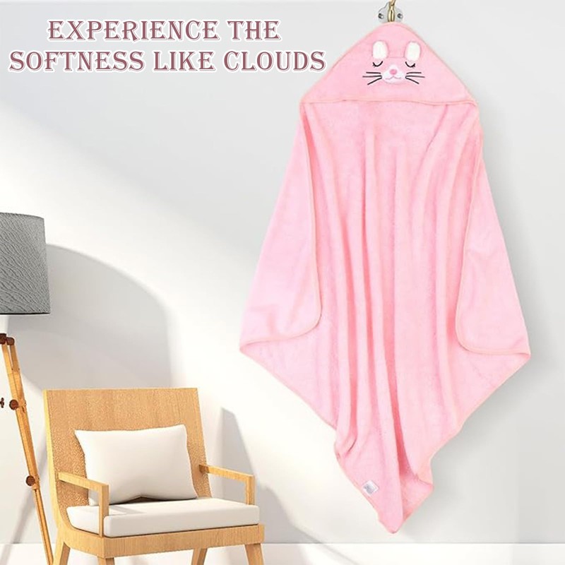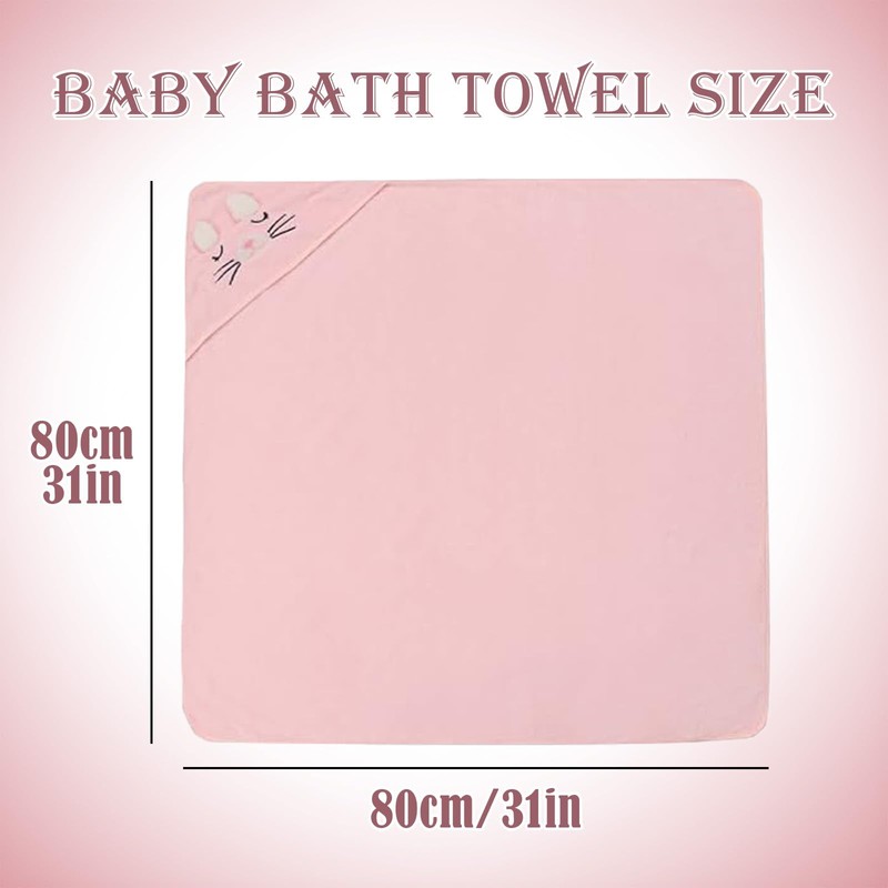 LHLZNB Hooded Baby Towel with Animal Ears | Ultra Soft Bamboo Bath Wrap for Newborns & Toddlers | Cute Design, 80x80cm Hypoallergenic baby towel (Pink Rabbit)