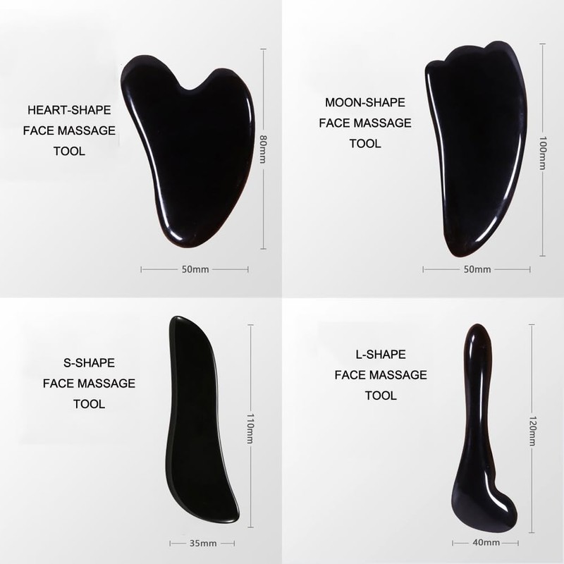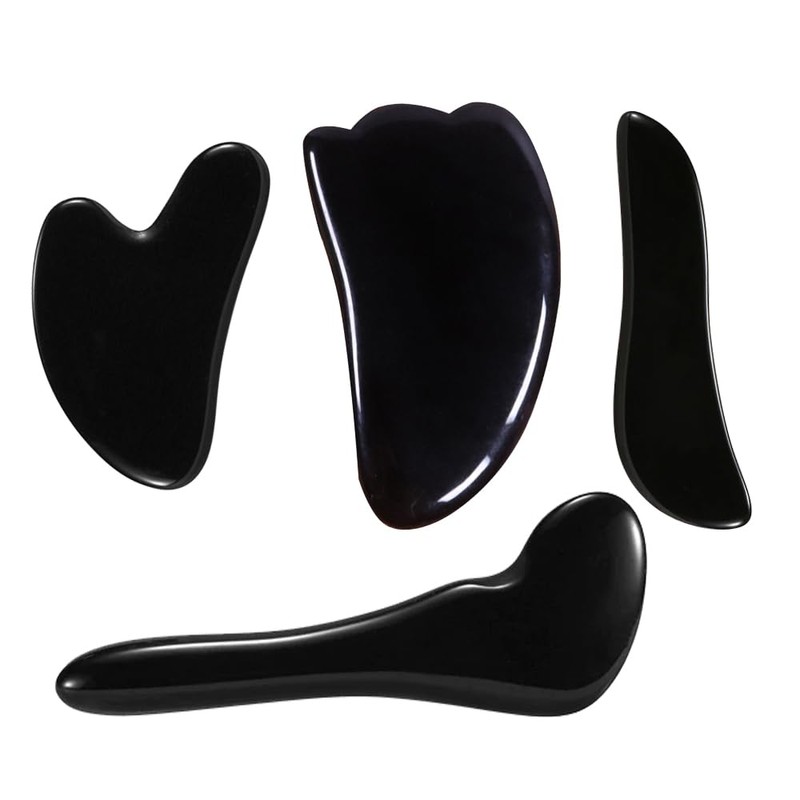 - Complete Obsidian Gua Sha Board Four - Piece Set:This exclusive set includes four uniquely shaped gua sha tools, each crafted from high - quality natural obsidian. The set features an S - shaped board, a triangular board, a scraping tendon rod, and a heart - shaped tool. Obsidian is renowned for its smooth, cool - to - the - touch surface, and its natural black luster adds an element of elegance. Each tool is carefully polished to ensure a seamless glide across the skin, providing a luxurious and effective self - care experience.