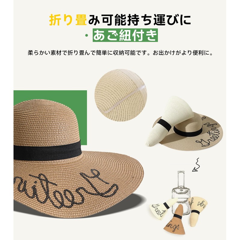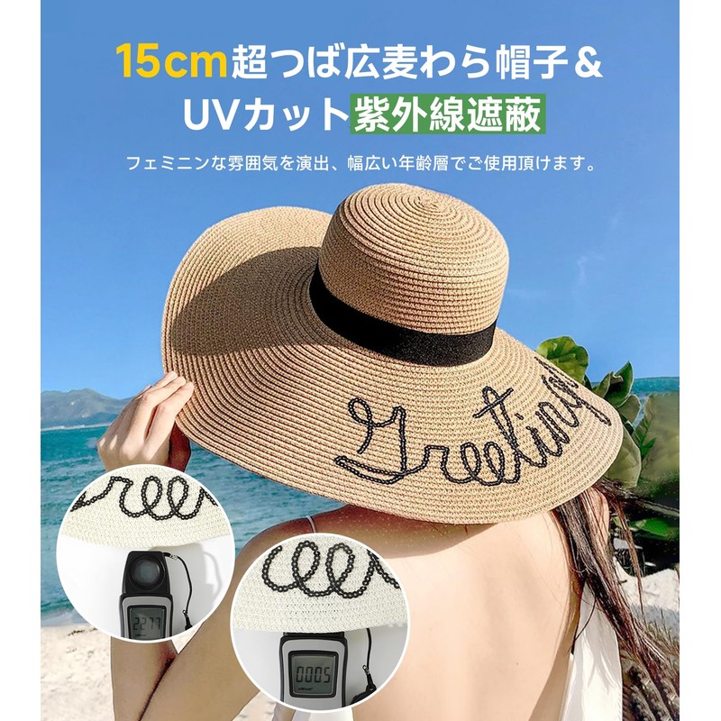 - 【15cm超つば広麦わら帽子&UVカット紫外線遮蔽 】15cm超つば広つきレディース麦わら帽子.ナチュラルな日よけ帽子です。通気性が良く、蒸れにくく、とても快適な被り心地をお約束します。ファッション感も兼ね揃えて、普段使いにはもちろん、旅行やレジャーにもお勧めです。つばは15cmです、全方位で顔から首元まで紫外線から保護し、大事な肌を守れるレディース帽子です。