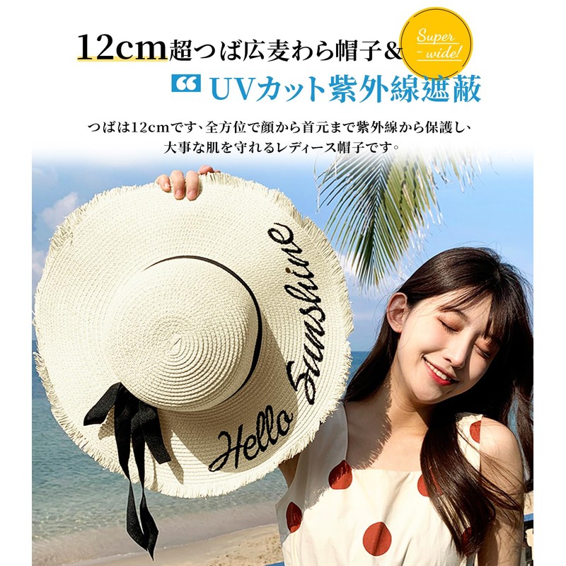- (4.7 inches (12 cm) Wide Brim Straw Hat & UV Protection Shielding) Women's straw hat with a 4.7 inches (12 cm) wide brim and a natural sun hat. Breathable, non-stuffy, and very comfortable to wear. It is also fashionable and recommended for everyday use, as well as travel and leisure activities. The brim is 4.7 inches (12 cm) and it protects your precious skin from UV rays from the face and neck in all directions