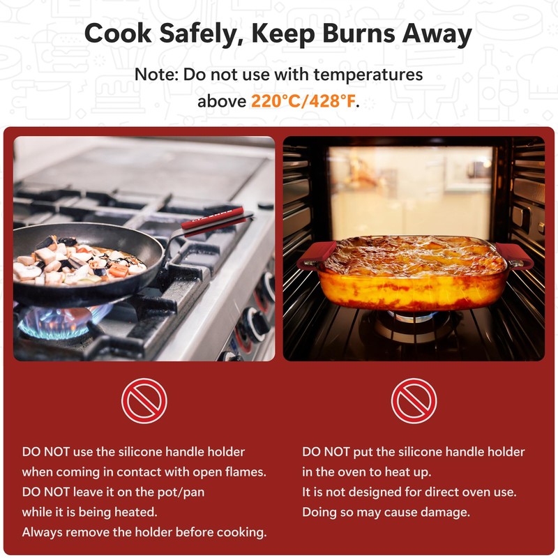- Easy to Clean: The pot handle cover has a smooth surface and does not absorb oil or food residue. You can easily remove stains on the silicone pot handle cover by simply wiping it after use or it can be cleaned in the dishwasher