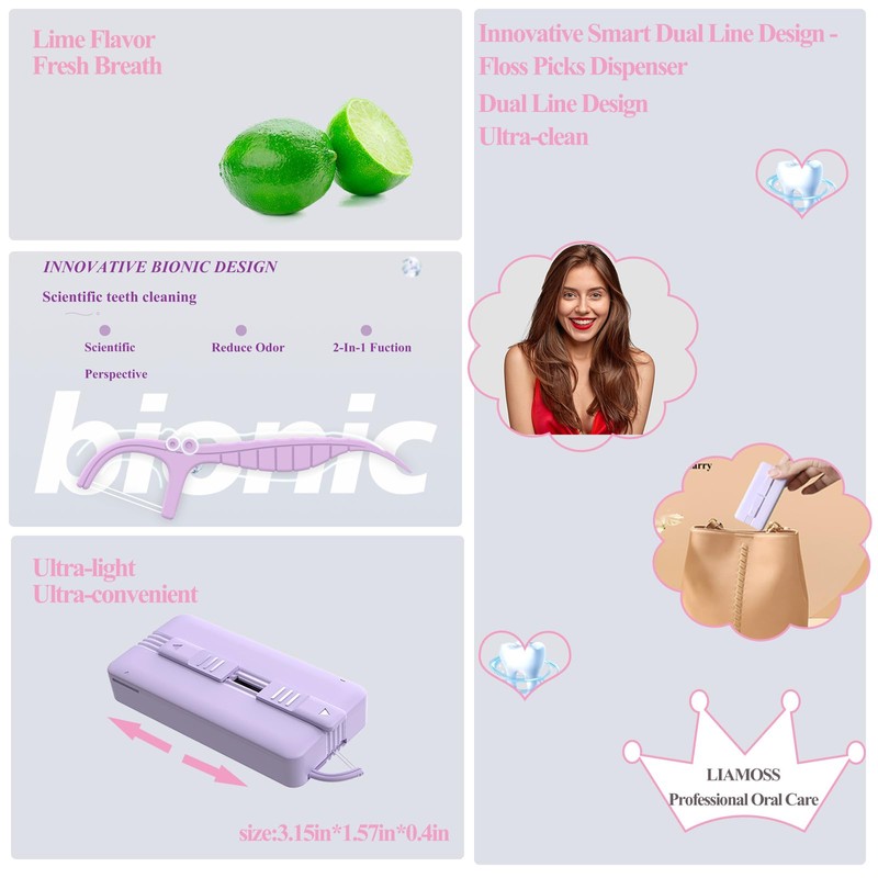 LIAMOSS Shred Resistant Twin line Dental Floss Picks Dispenser-2 Box 20Count Lime Flavor Double line Flosser Portable Case-Best Dental Tools for Oral Care-The Ultimate Floss Storage Solution(Purple)