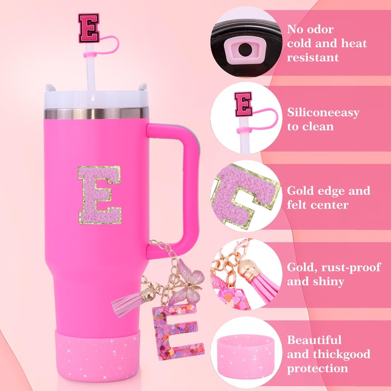 - COMPLETE SET: Package includes 9 essential accessories - straw cover, protective boot, spill-proof stopper, 2 handle charms, and decorative stickers in pink colour scheme
