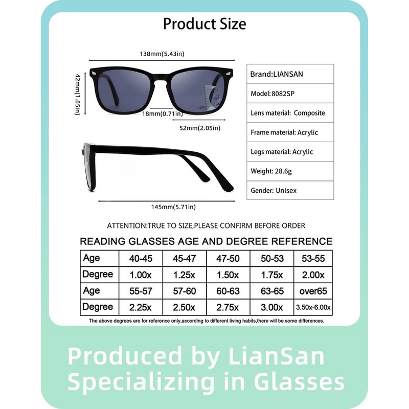 - 【Package】1 packing box,1 color progressive multifocal reading sunglasses,1 high quality cleaning cloth