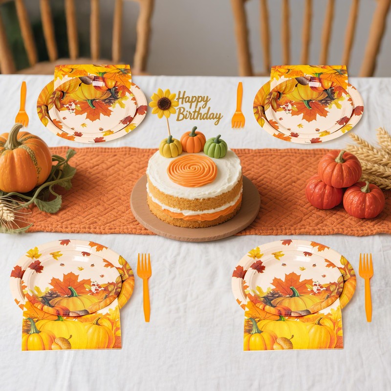 - 【Fall Thanksgiving Party Supplies】: Perfect for family gatherings, friendsgiving party celebrations, or autumn harvest parties, this disposable fall decor tableware set makes a statement of cheerful and joyful to the fall harvest thanksgiving party.