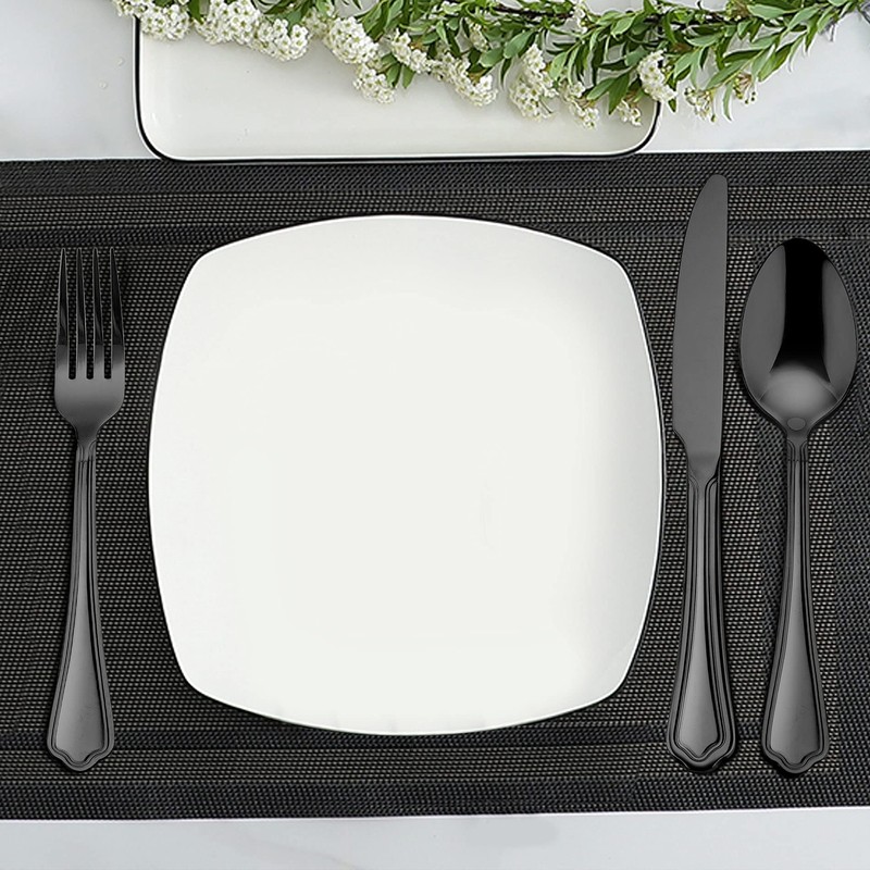 - Decent quality, this 40pcs black flatware set is made of high quality stainless steel ensures health and durability, rust resistant and without any harmful substances, solid constructions and durable enough for long time usage, no worry about it will bend after heavy use