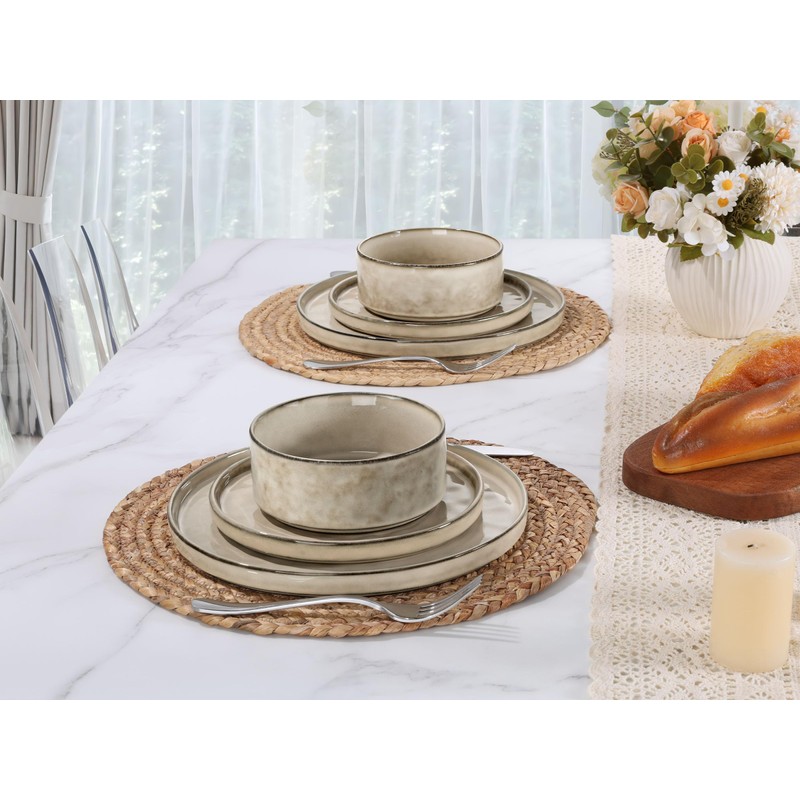 • 12 Piece dinnerware sets for 4, includes 2 polar white dinner plates, 2 sandy beige dinner plates 2 polar white salad plates, 2 sandy beige salad plates, 2 polar white cereal bowl and 2 sandy beige cereal bowls, shallow raised edges to prevent spills yet shallow for easy access to the food, perfect combination of functionality and aesthetic appeal, suitable for a variety of occasions, whether a formal banquet or a casual family meal