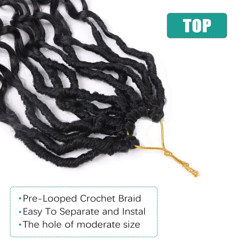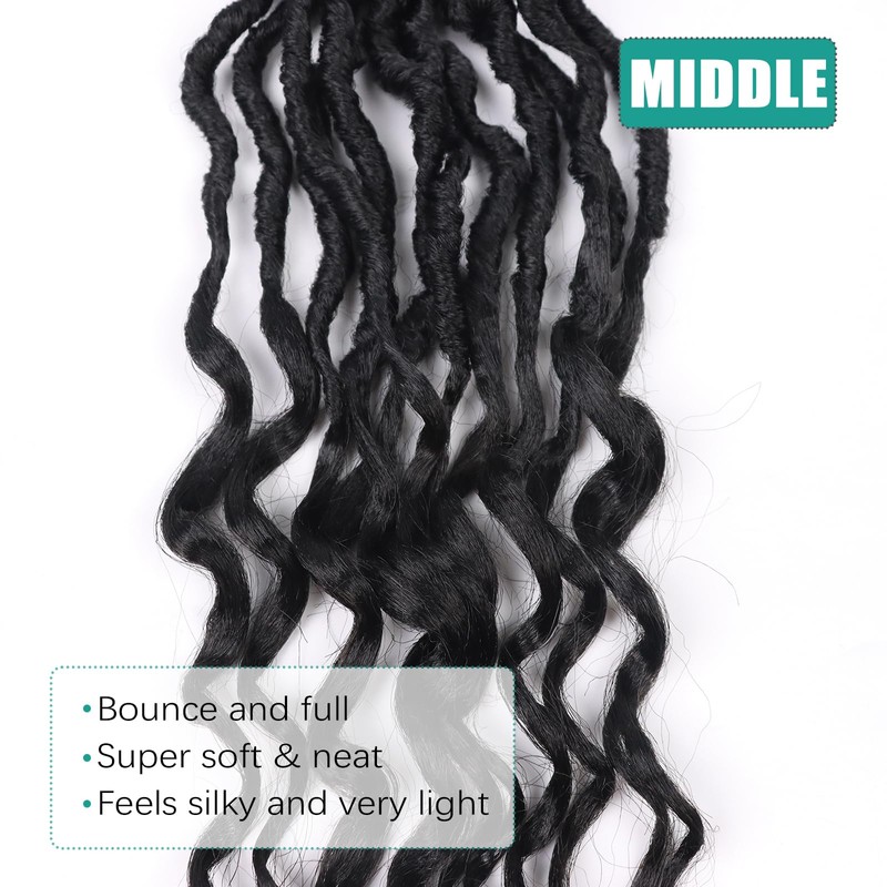 - Premium Hair MaterialThe goddess locs crochet hair is twist locs hair,natural texture,resemble the touch and feel of real human hair.Soft and hold a long time,skin-friendly,no smell,Ideal for your vacation and faux locs look