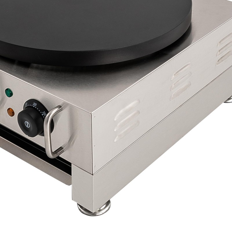 - [Excellent Performance] Small pancake maker large flat stove surface of 15.75in diameter, 2.8KW power, and wraparound heating element allow it to heat quickly and evenly, so you can make one large crepe, or cook several smaller crepes at the same time. And the non-stick coating on the surface prevents the batter from sticking to the pan, keeping the integrity of the pancake for you to enjoy delicious pancakes