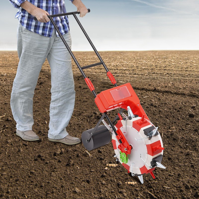 - [High Efficiency] Corn planter compared with traditional planting methods, this product directly injects seeds into the soil, saving time and labor for excavation, sowing, and filling, greatly improving planting efficiency. Large spring is connected to the bracket, which can enhance the stability of the machine during use. Tilt port can facilitate you to pour out the remaining seeds.