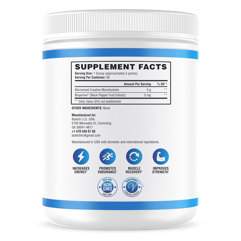 • Optimal Serving Size - 5000mg serving with pure Creatine Monohydrate powder and added BioPerine for faster results. Scooper included.