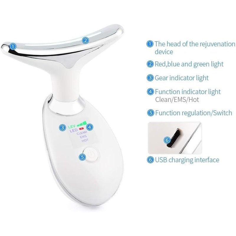 LIARTY Neck Lifting Massager, Face Electric Massager with 7 Modes 45°C for SkinTightening & Neck Lifting EMS Massage Face Toning Firming for Women (White)
