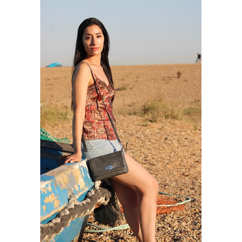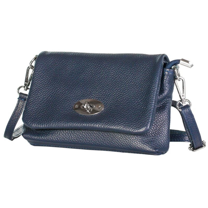 LiaTalia Womens Twist Lock Opening Real Leather Small Clutch Bag with Adjustable Shoulder Strap - Ayla (Navy)