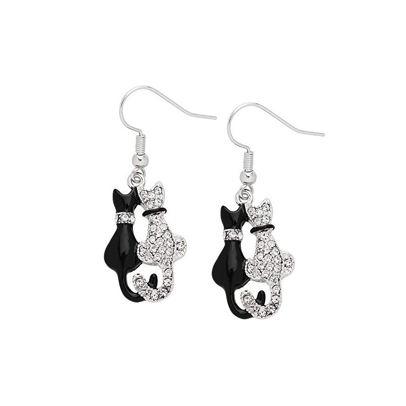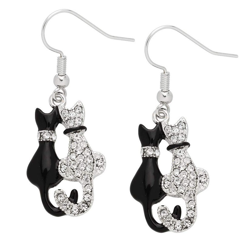 Liavy's Black & White Cat Fashionable Earrings - Sparkling Crystal - Hand Painted - Fish Hook - Unique Gift and Souvenir