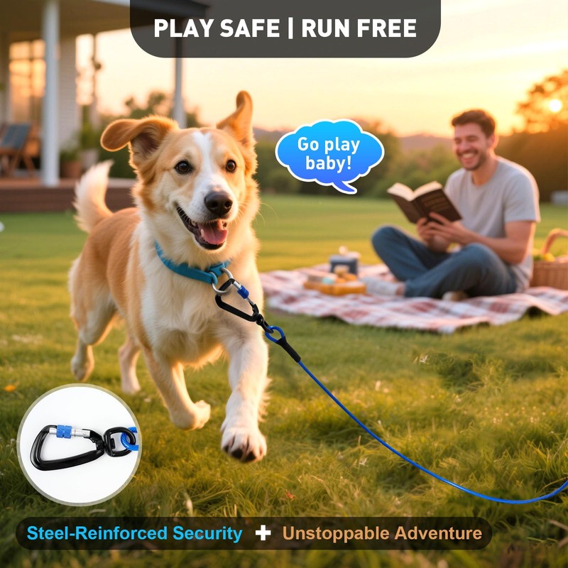 • Chew-Proof Steel Core: Galvanized carbon steel dog tie out cable with vinyl armor resists sharp teeth and weather. Reinforced abrasion sleeve prevents fraying for years of heavy-duty use