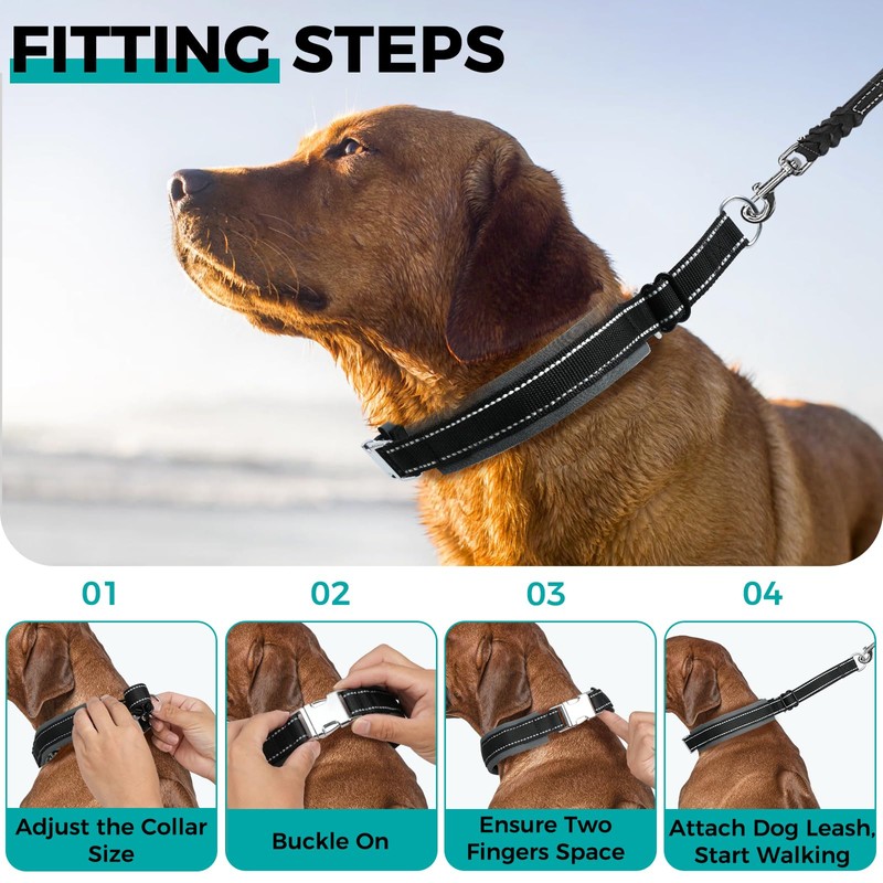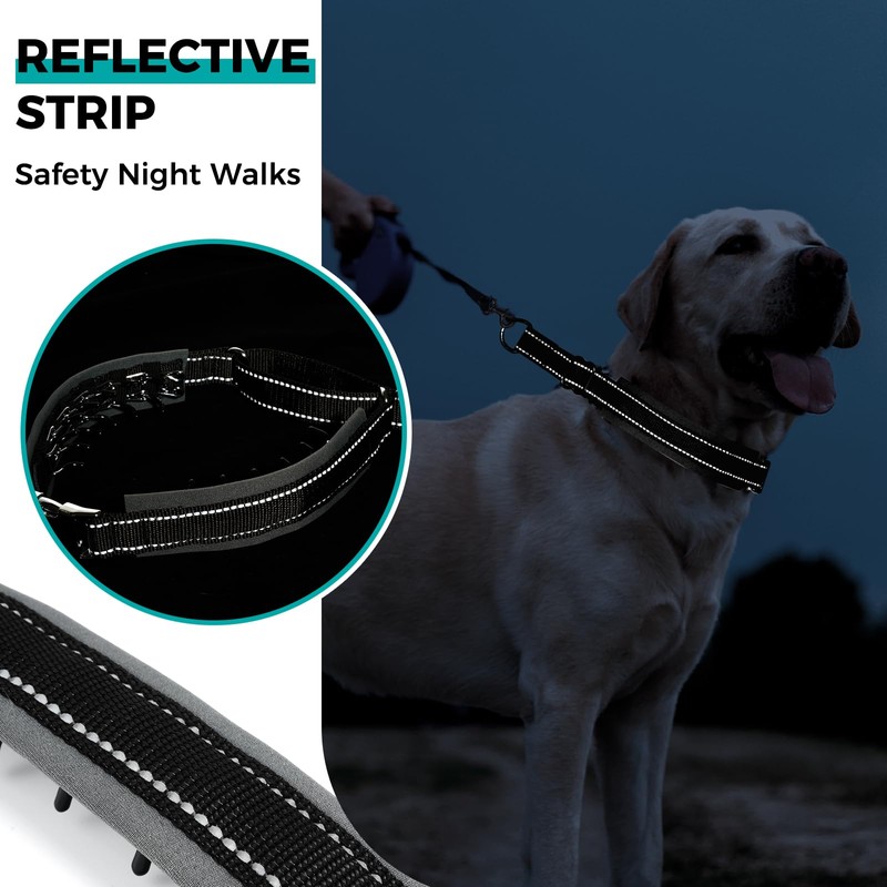 Reflective Safety & Heavy-Duty Durability‌: Integrated with 360° reflective strips for nighttime visibility and built with military-grade nylon reinforced by stainless steel chains, this collar withstands extreme pulling force while protecting your dog’s neck from abrasions‌ ‌