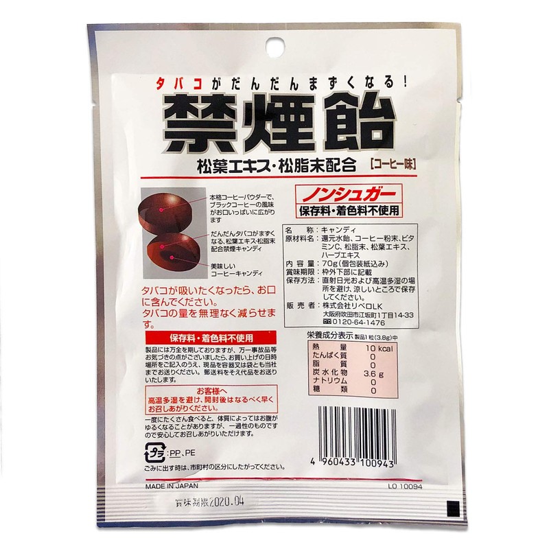 Smokeless Candy 70g Pine Leaf Extract, Pure Coffee Powder Pine Leaf Extract, Pine Sugar Condiment Candy Coffee Candy Non Sugar Preservative No Coloring, If you want to suck cigarette, you can reduce cigarette amounts of cigarettes effortlessly, Real Coffee Powder to spread black coffee flavor into your mouth. Eliminates the mess of pine needles, pine leaf extracts, pine leaf extracts, herb extracts name: Candy Nutritional Sugar, Preservative and Colorless Free Ingredients Name Reduced Candy, Coffee Powder, Vitamin C, Pine Fatty Powder, Pine Leaf Extract, Herb Extract Name: Candy Nutrition Indicator Heat Volume: 10 kcal Proteine: 0 Proteine: 0 0 · Sugar : 0 · When eating a lot at once, the stomach may become loose depending on the physical condition, but you can rest assured that you can eat it in a cool place, away from direct sunlight and high temperature humidity, please keep it in a cool place · Eat as soon as possible after opening, if there is no product stock at the time of the end of the order.Seller: Libero LK Co.