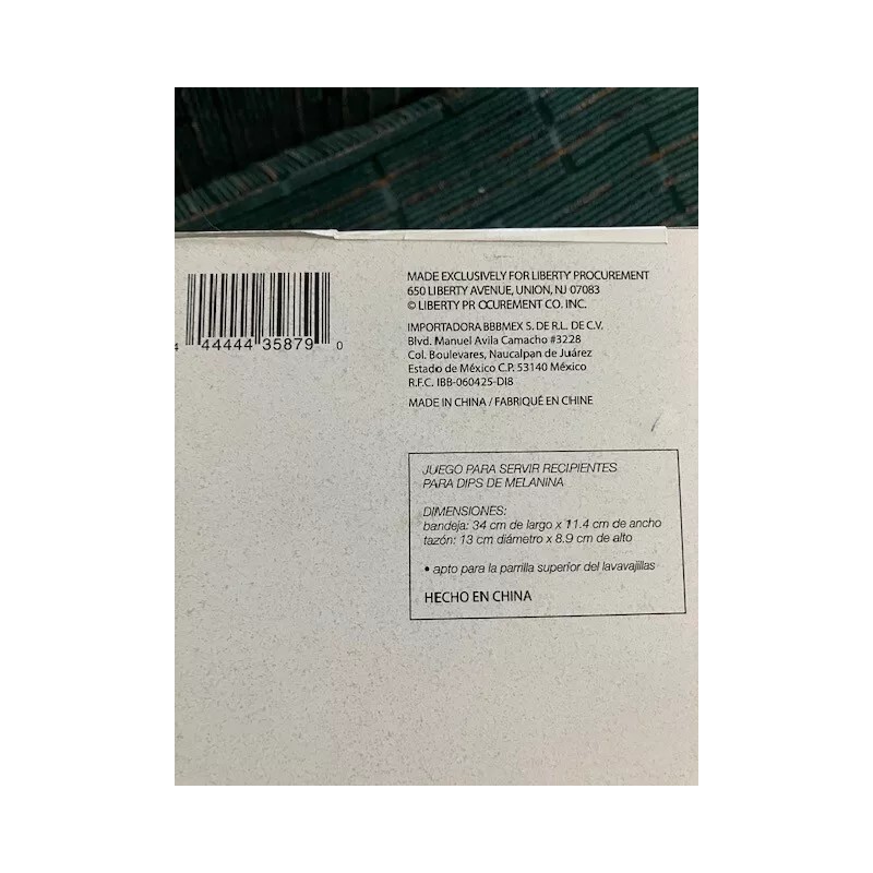 Purchased from Bed Bath and Beyond - Brand new in retail box Melamine Dip Bowl set with Bamboo Tray includes matching spoons Tray: 13.4" L x 5.1" W Bowl: 4.2" diameter x 2.3" H 100% melamine bowls and spoons (white - no pattern) bamboo tray top rack dishwasher safe Smoke-free environment. |