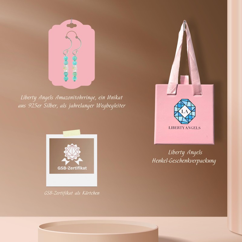 • Compassion, inner emotional balance: The Liberty Angels Amazonite earrings: Our exclusive Amazonite earrings help to release inner blocks in communication and promote emotional balance.