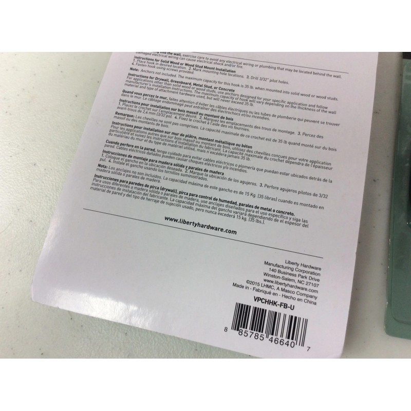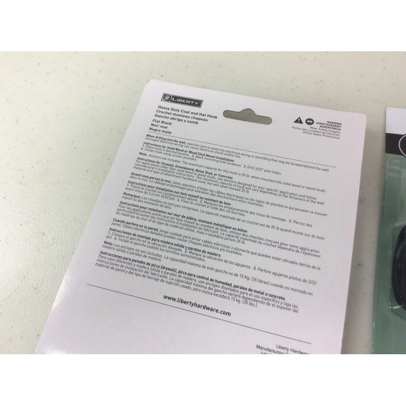 Liberty Hardware Hooks Flat Black Metal with Hardware Set of 6 NEW