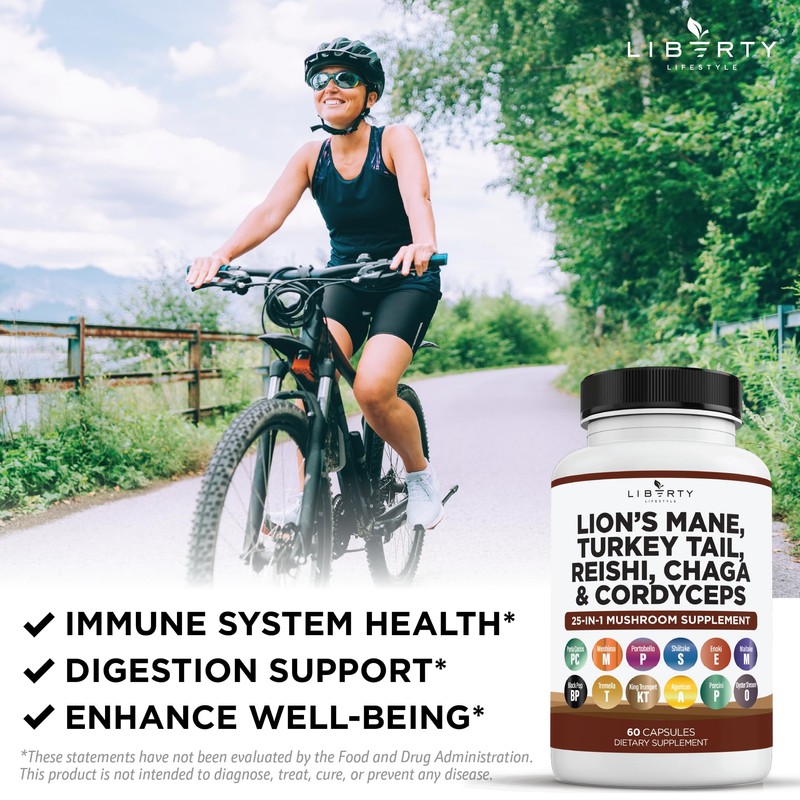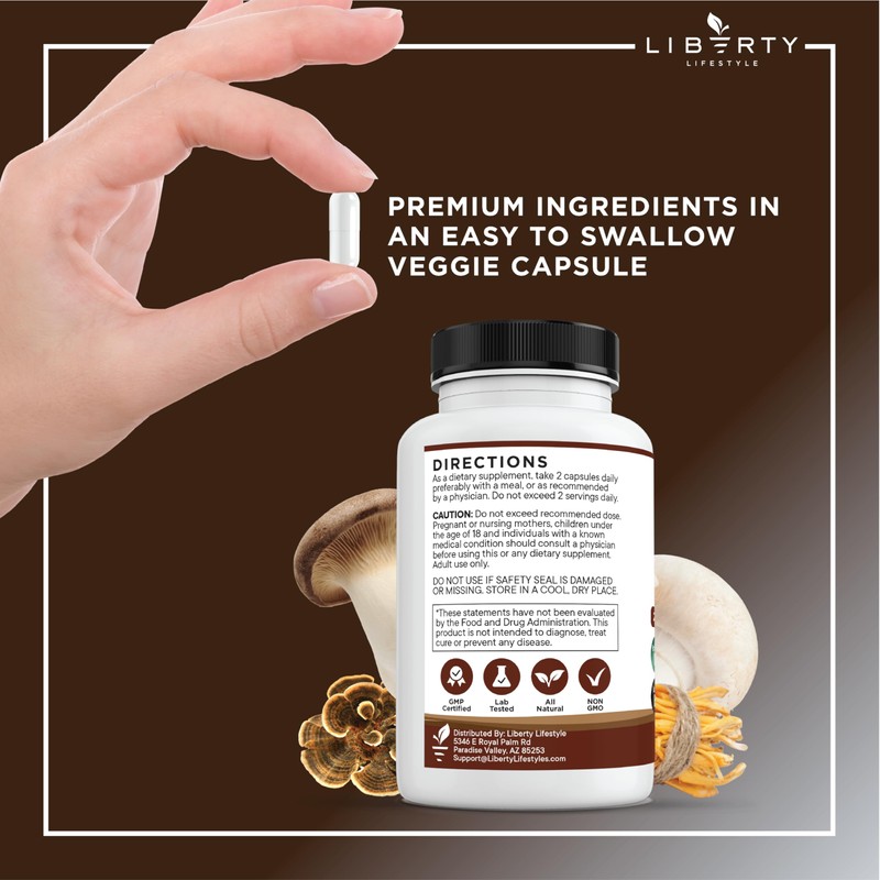 Liberty Lifestyle Lions Mane Mushroom Supplement with Turkey Tail Reishi Cordyceps Chaga with Marshmallow Root - 3-Pack