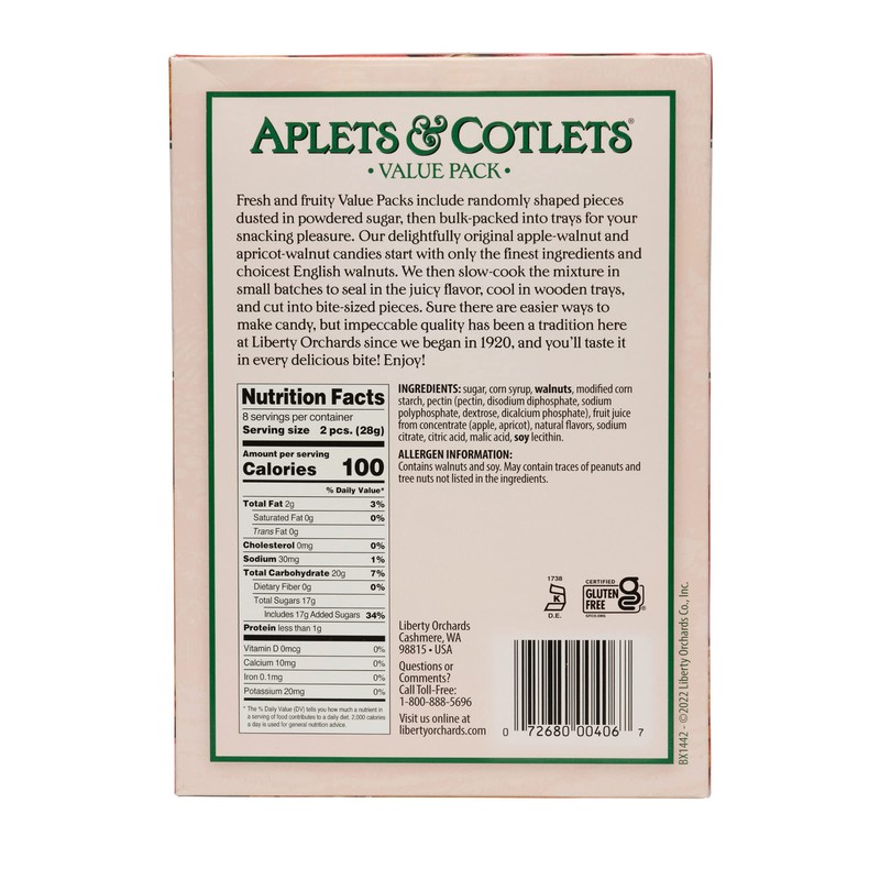 Liberty Orchards, Aplets & Cotlets Value Pack - Vegan, Fruit & Nut Chewy Candy - 8 Oz