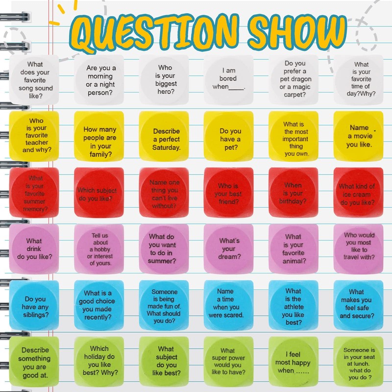 - Full set: 12 dice as a set, a total of 5 sets, a total of 60 dices; Enough conversations dice to meet the needs of your different parties; They are suitable for those who seek to improve communication skills, overcome shyness and improve social skills