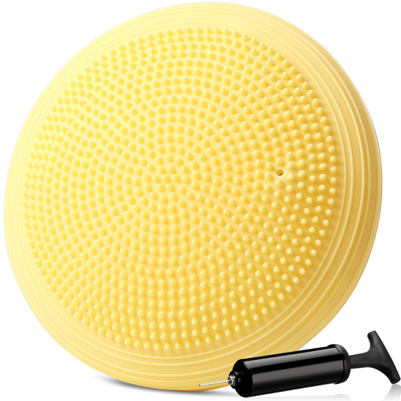 Libima Inflated Wobble Cushion Wiggle Seat for Sensory Kids Flexible Seating for Classroom Elementary Sensory Seat Balance Disc with Pump for Kids Adults Office School Home (Macaron Yellow)
