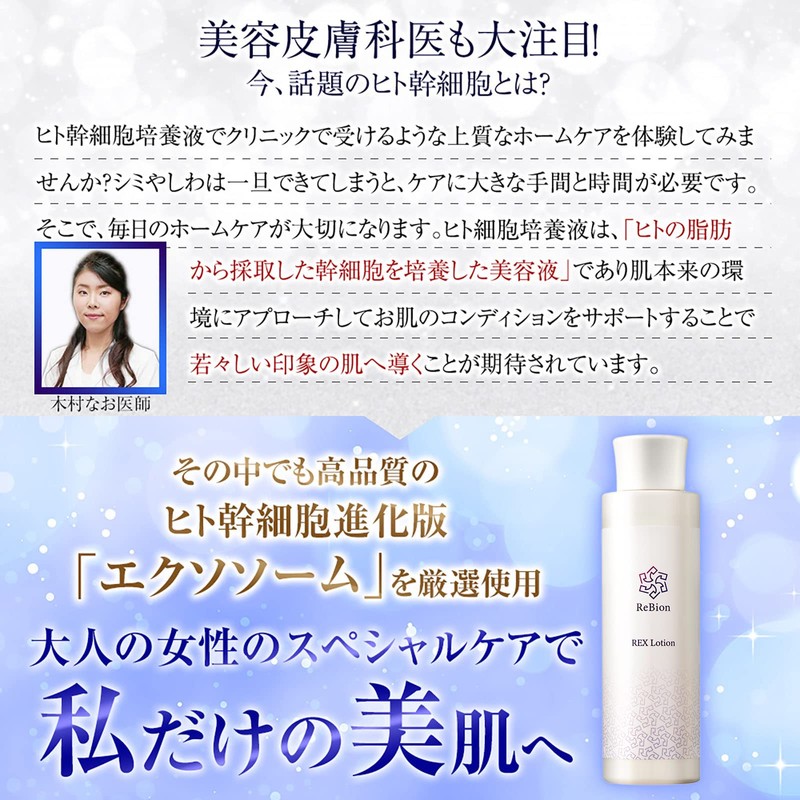 - Highly concentrated formula of rare ingredients, human stem cell culture liquid. A lotion that moisturizes your skin with a generous amount of rare ingredient "human stem cell cultivation solution" that is currently featured in the beauty industry. The secret of the moist and moist skin is in the cells