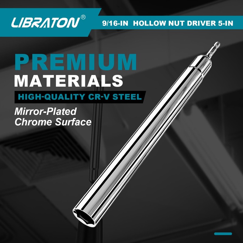 Libraton 9/16-Inch by 5-Inch hollow shaft nut drivers is designed for long bolts, studs or threaded rod jobs.