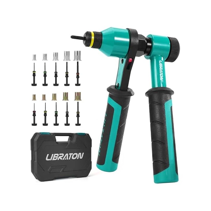 LIBRATON Rivet Nut Tool, Rivnut Tool, Professional Ratchet Nutsert Tool Kit, Nutsert Gun Kit with 10 SAE and Metric Mandrels, 100PCS Rivet Nuts, Rugged Carry Case, Insert Tool Kit for Automotive
