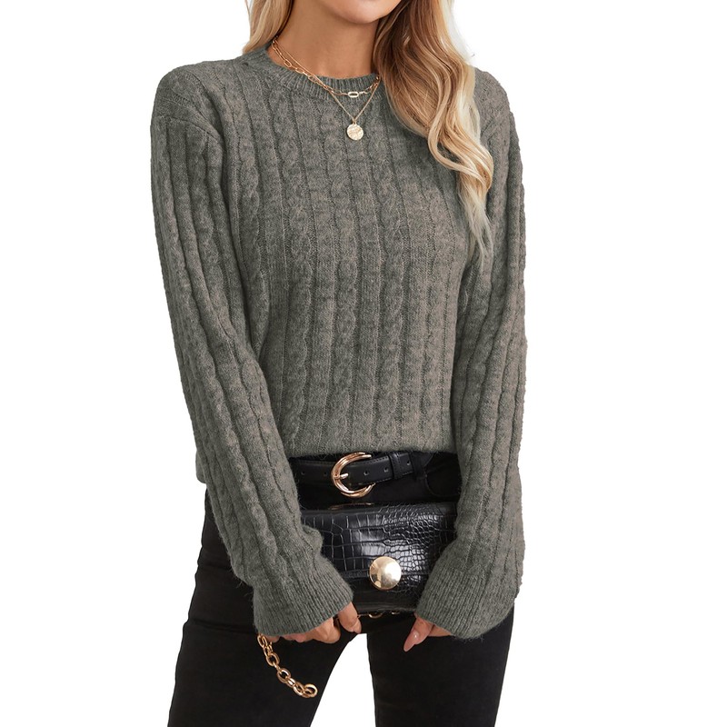- Design Features: Classic pullover sweater with a timeless cable knit pattern. Features a crewneck, drop shoulders, and long sleeves, offering a blend of casual and dressy appeal.