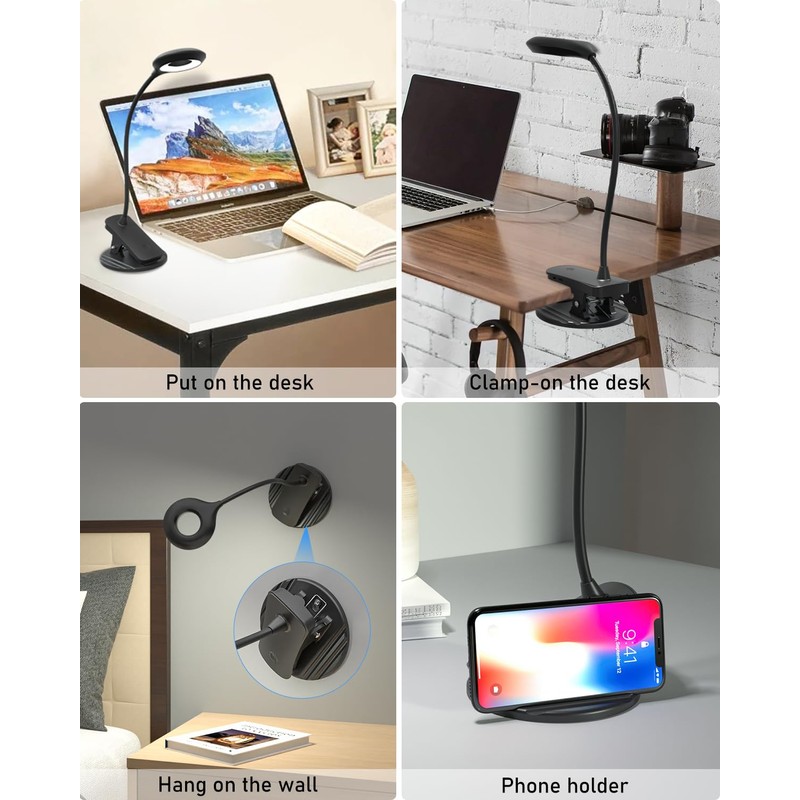 - Multifunktionale Steh-Clip-LED-SchreibtischlampeDie Bettlampe kann an Ihr Bett oder Bcherregal geklemmt werden und kann auch flach auf Ihren Schreibtisch gestellt werden, um als Tischlampe verwendet zu werden. Der vergr??erte Tellerfu? ist mit Silikonpads ausgestattet, um stabil auf dem Schreibtisch zu stehen. Das geriffelte Design auf beiden Seiten des Sockels kann als Handyhalterung verwendet werden, um Lernvideos oder Filme anzusehen. Sie kann auch platzsparend an die Wand geh?ngt werden.