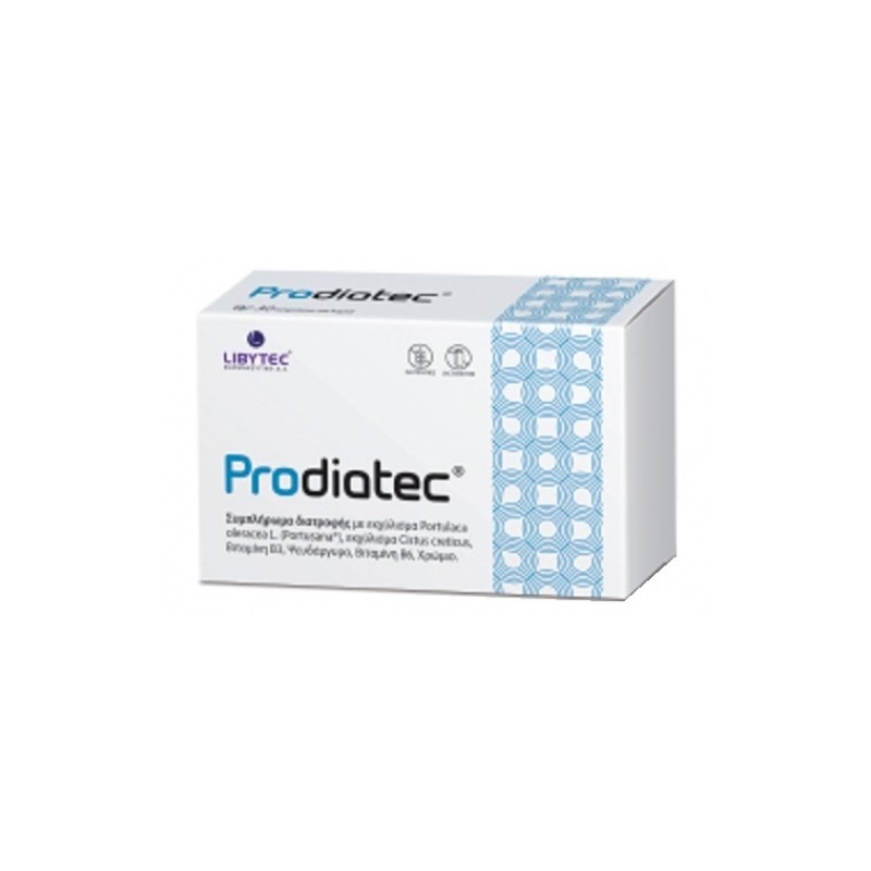 Prodiatec is a dietary supplement that combines two plant extracts, along with vitamins and minerals. Contains the only patented Portusana extract, from slide. Contains oil extract (Cistus creticus), a Greek plant. It is further enhanced for synergistic action with the trace elements Cr, Zn and vitamins B3 and B6. According to the list of permitted health claims, chromium helps maintain normal blood glucose levels, along with the action of zinc which contributes to the normal metabolism of carbohydrates.