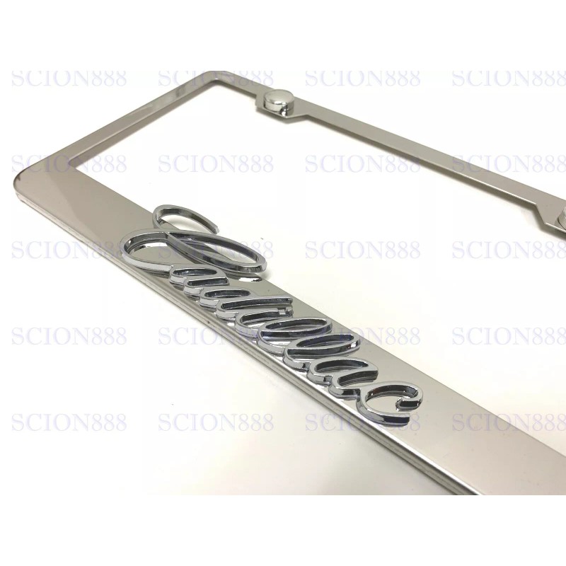 License Plate Frame 1pc 3D CadillacEmblem Badge Stainless Steel Chromed Metal License Plate Frame *L