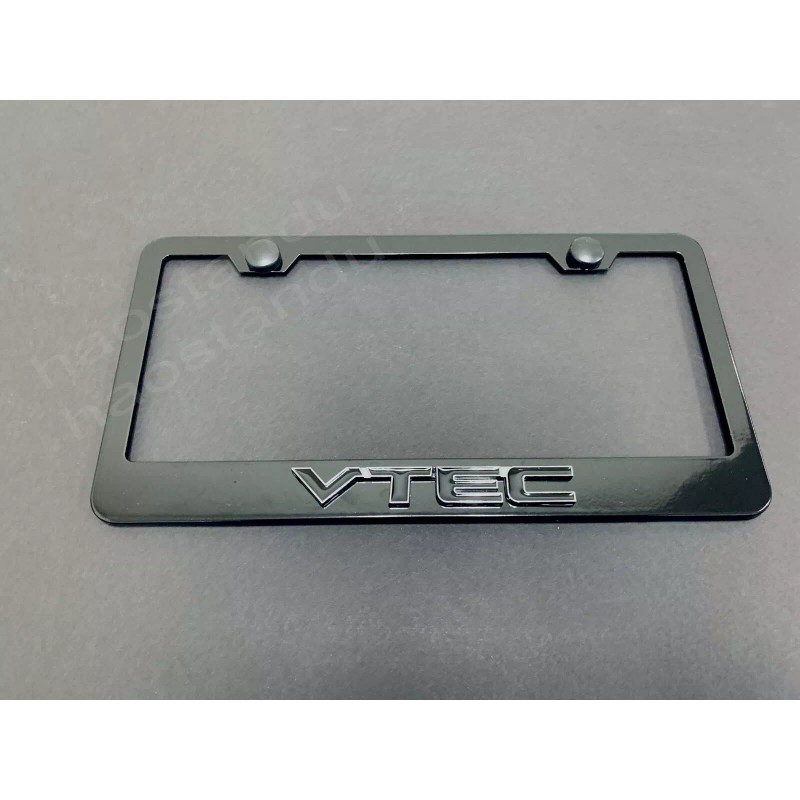 License Plate Frame Shop 1xVTEC 3D Emblem BLACK Stainless License Plate Frame RUST FREE + Screw Cap BLK