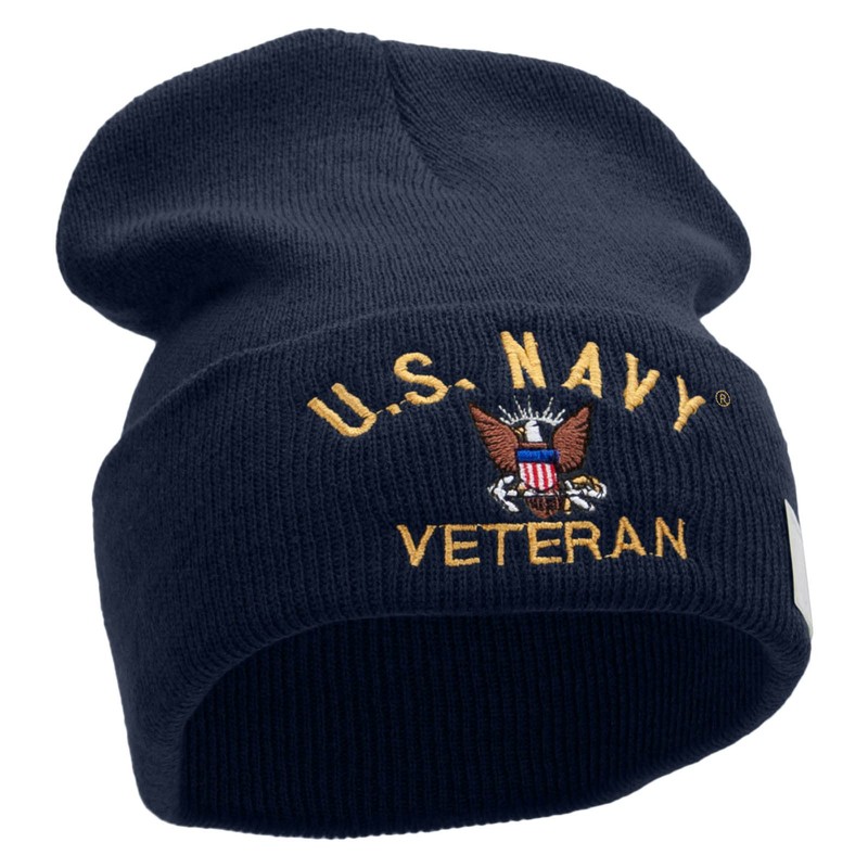 Licensed US Navy Veteran Military Embroidered Long Beanie Made in USA - Navy OSFM