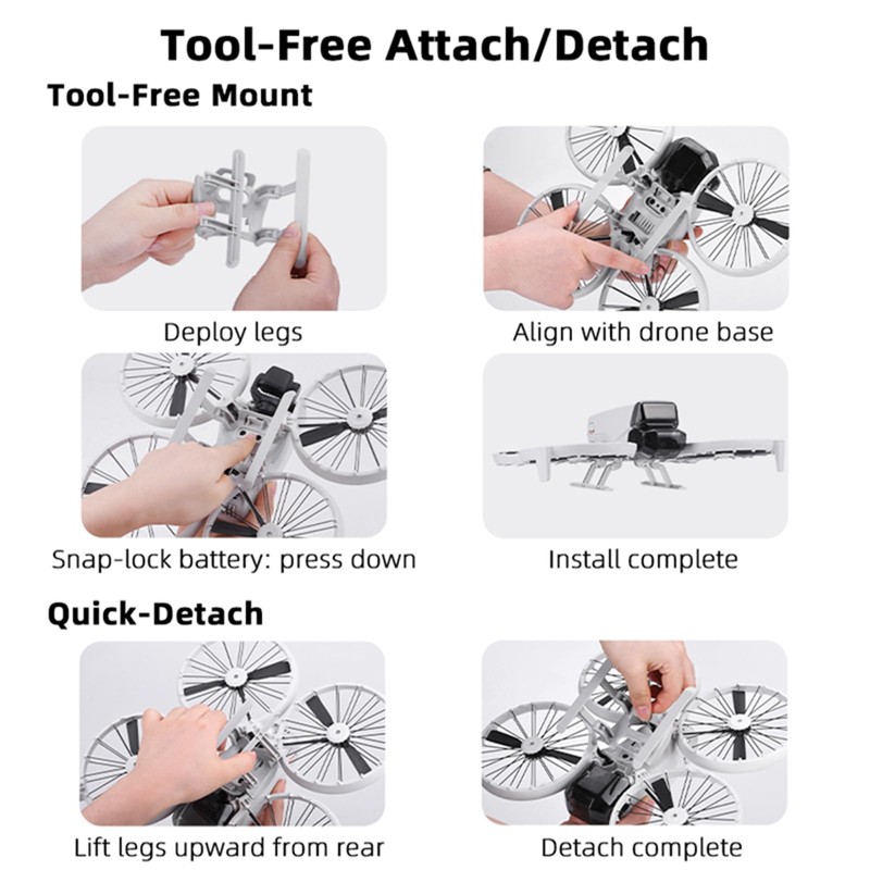 - 【Quick Release】 Snap-on design, can be assembled and disassembled quickly without tools, will not damage the drone fuselage, will not shake or fall off during flight. The drone battery can be quickly replaced without disassemble this landing gear.