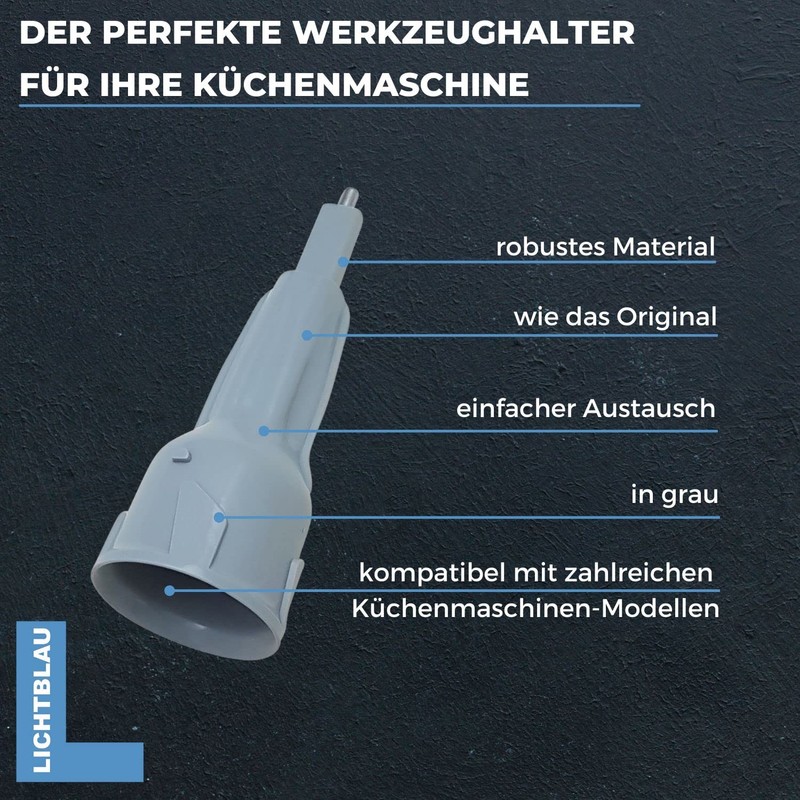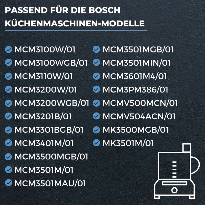 - Perfect compatibility – Our high-quality Lichtblau tool holder carrier is suitable for Bosch food processors and is the perfect replacement for the models MCM3100W, MCM3110W and MCM3200W.