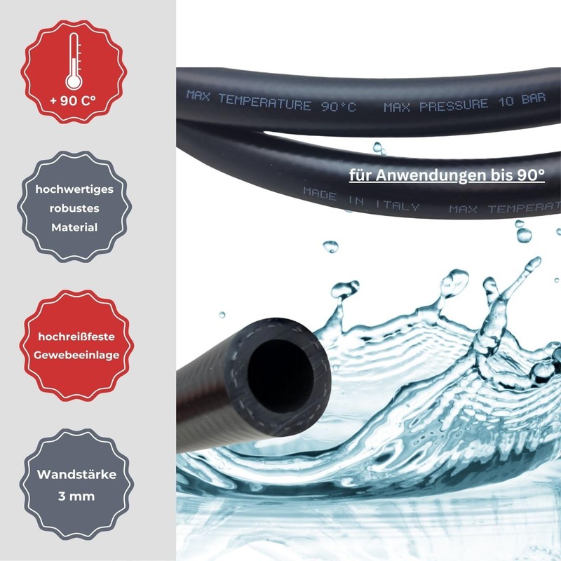 - First-class quality – the water hose is suitable up to 90 degrees and impresses with its high-quality workmanship and keeps reliably tight thanks to its two rubber seals - see for yourself