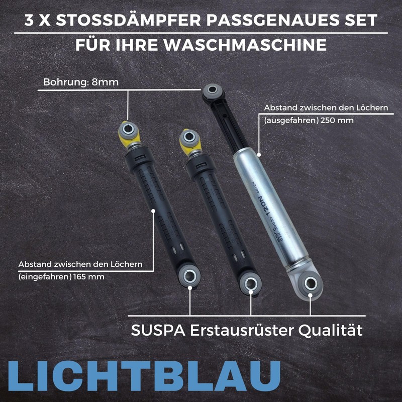 LICHTBLAU Set of 3 Suspa shock absorbers 7381924 for Miele washing machine, vibration damper, 8 mm bore 120N/75N, 07381920, spare part washing machine damper