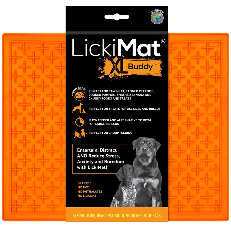 LickiMat X Large Breed Buddy Dog Lick Mat, Dog Calmer, Slow Feeder, Anxiety Reliever Alternative to Puzzle Toys, Slow Feeding Bowls. Use Peanut Butter, Wet, Raw, Mixed Food, Healthy Treats - Orange