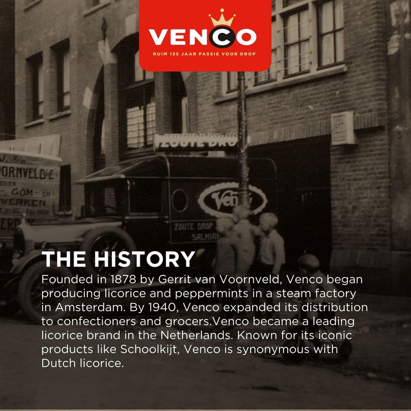 - Venco completely understands this craving for licorice. Every day we are ready to make the most delicious licorice for you and we have been doing so for 145 years!